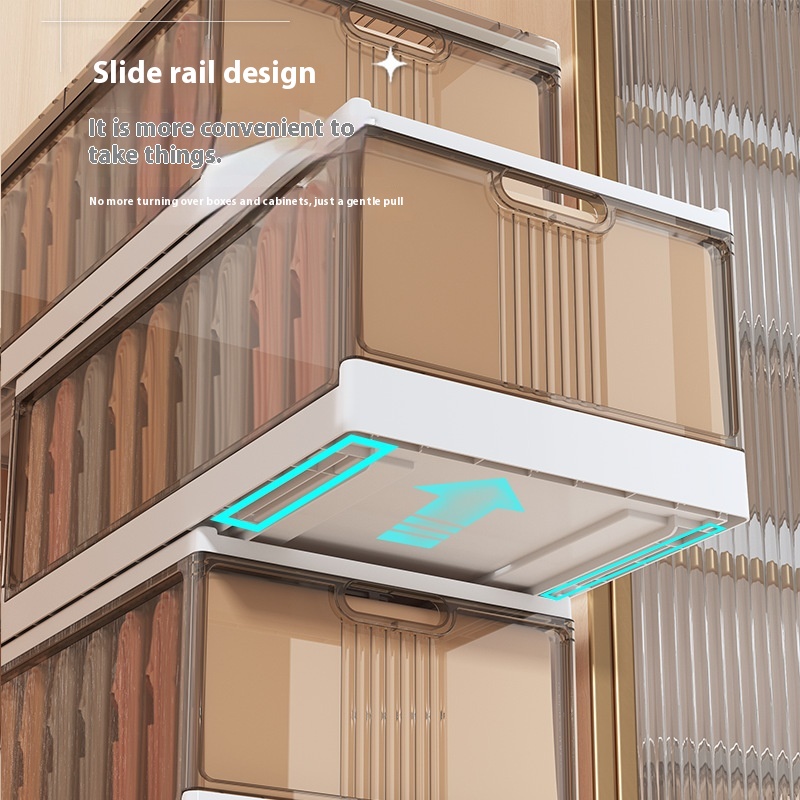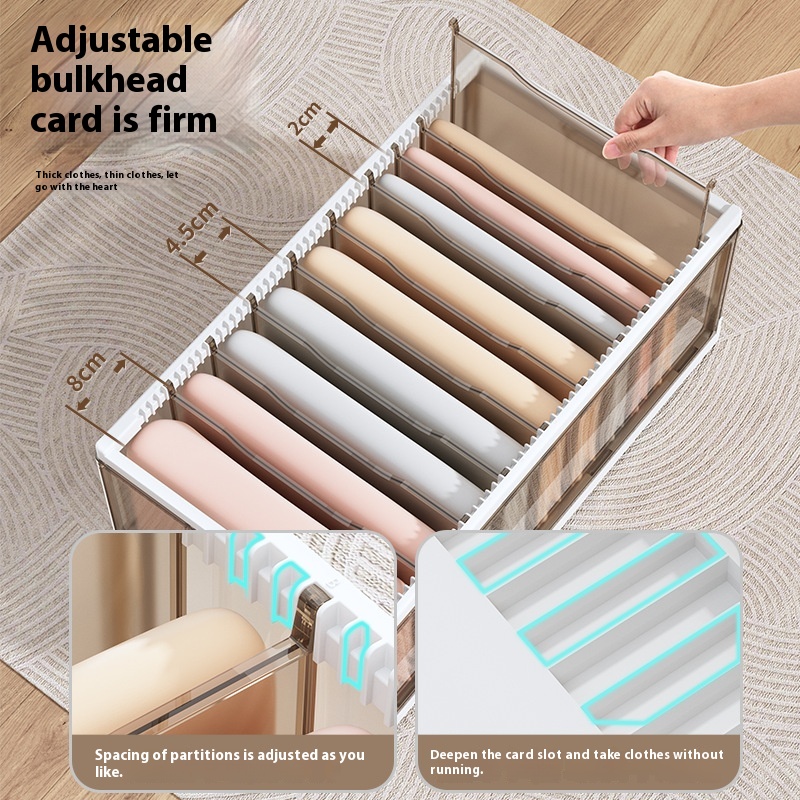 Clothes Storage Box Home Wardrobe Layered Artifact Pull-out Partition Clothing Pants Folding Frame Storage Basket Storage Box