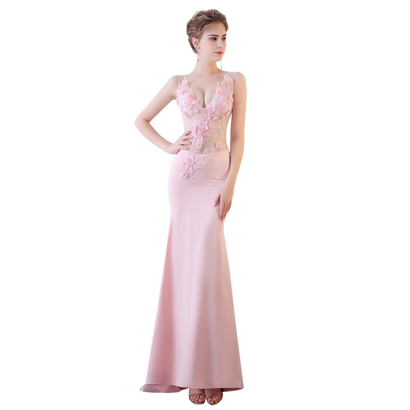 G825/Sexy See-through Dress Evening Dress Lace Slim Deep V-neck Long Club Ktv Work Clothes