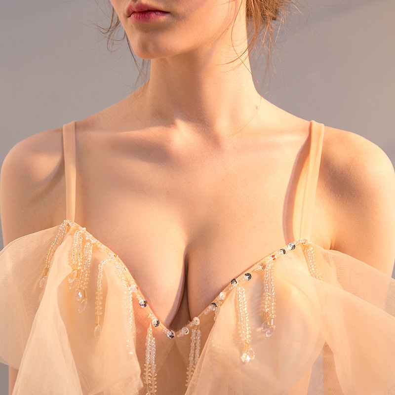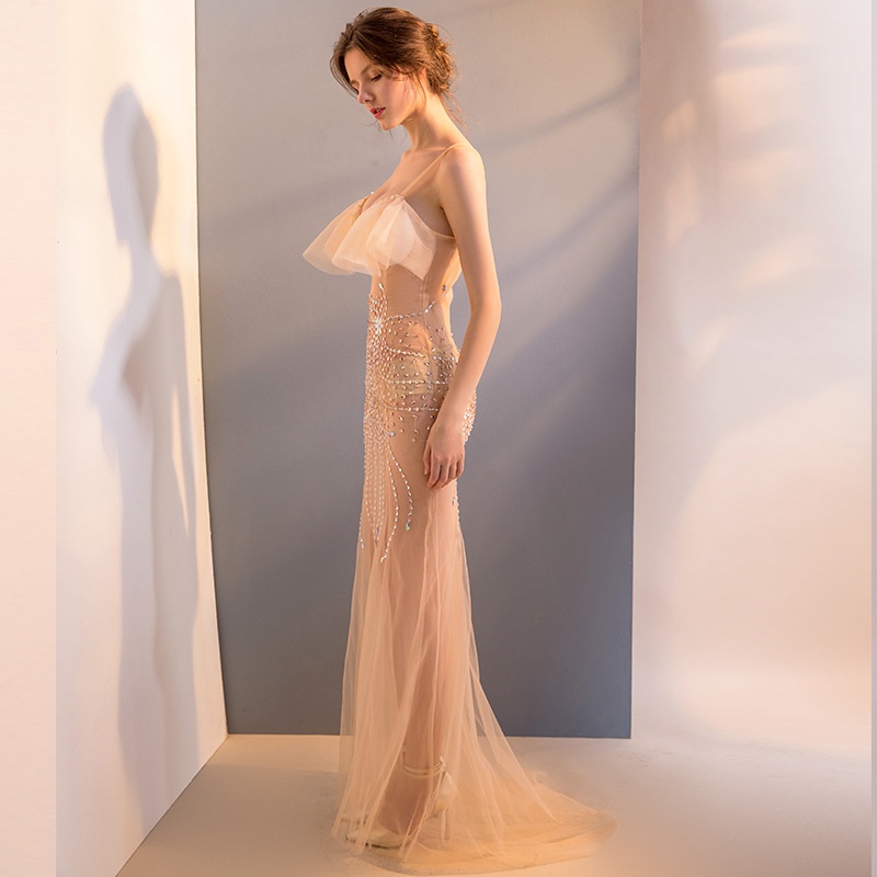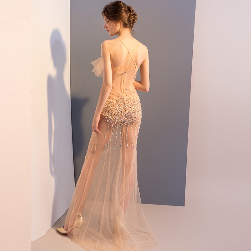 G1211/Sexy See-through Dress Mesh Transparent Hand-sewn Diamond Sling Low-cut Performance Costume