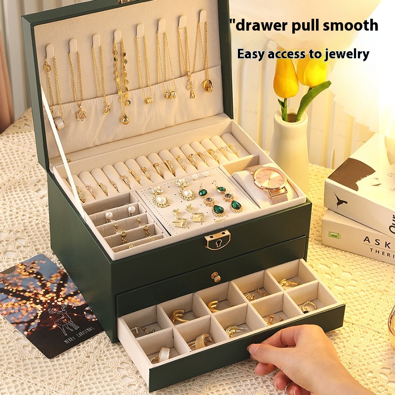 High-end Jewelry Storage Box Necklace Earrings Earrings Earrings Bracelets Rings Exquisite Jewelry Gold Jewelry Large Capacity
