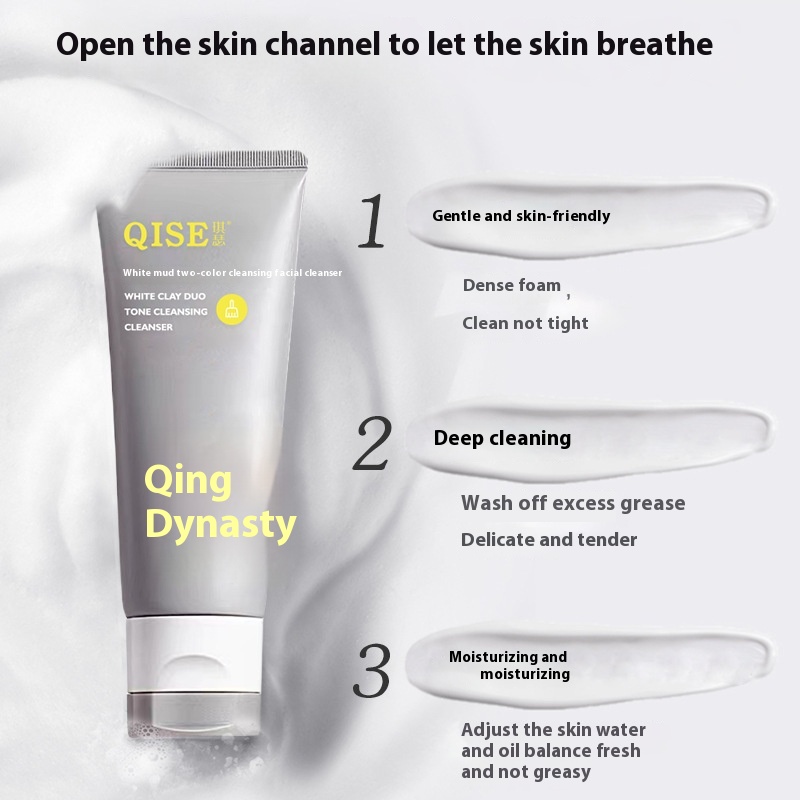 Qise Two-color Cleansing Cleanser Amino Acid Oil Control Acne Removal Mite Shrink Pores Cleansing White Mud Cleanser