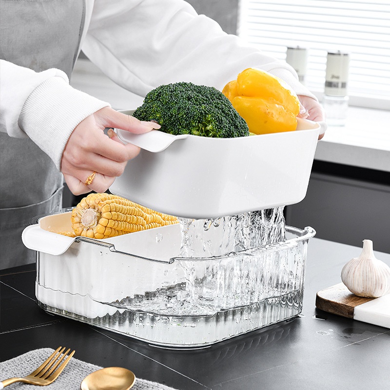 Grid Drain Basket Refrigerator Storage Box Fresh-keeping Food Preparation Compartment Drain Home Kitchen Washing Vegetable Multifunctional Drain Basket