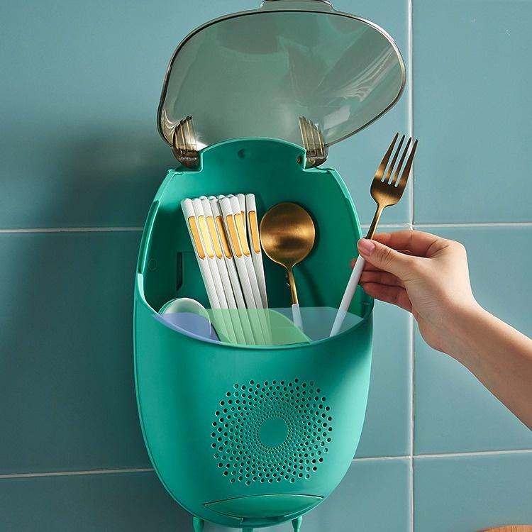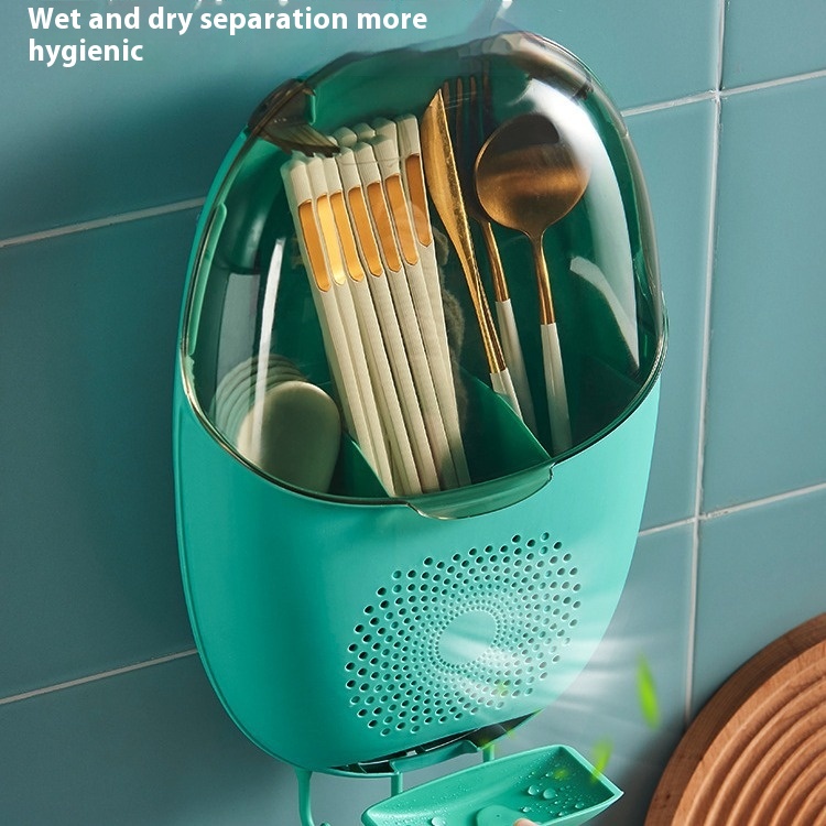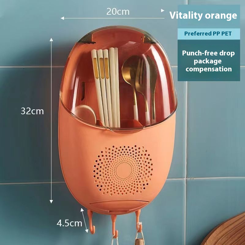 Household Chopstick Cage With Lid And Dustproof Wall-mounted Partitioned Punch-free Chopstick Tube Kitchen Chopstick Cage Wall-mounted Drain Storage Box