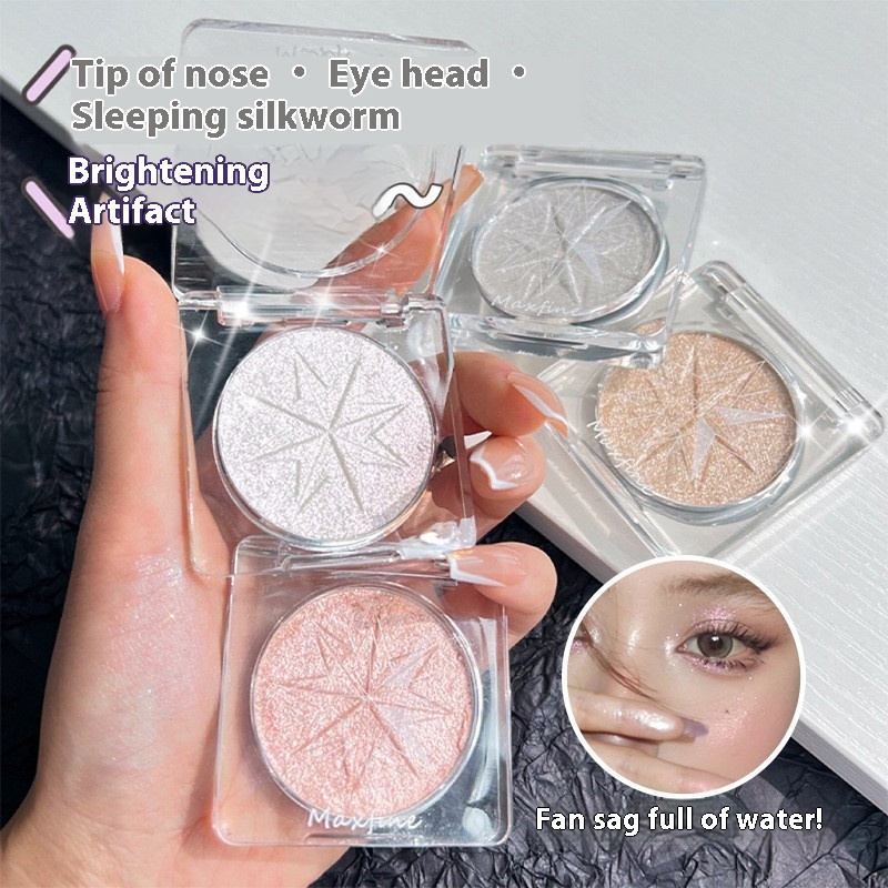Maxfine Star Shine Highlight Powder Single Color Pearlescent Eyeshadow Not Easy To Remove Makeup Silkworm Brightening Highlighter Disc