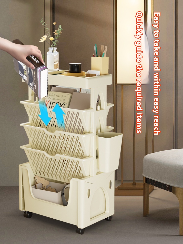 Bookshelf With Wheels,Movable Floor-standing Multi-layer Rack,Organize Student Desk Sundries Storage Artifact Study Bookcase