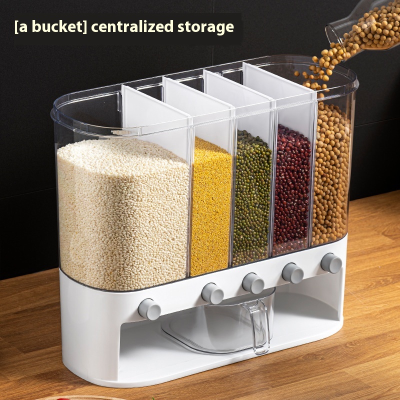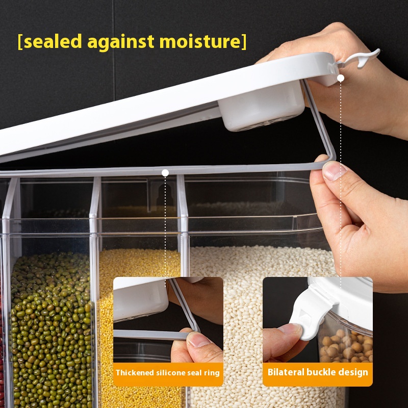 Kitchen Gra And Cereals Partition Storage Box Food Grain Storage Tank Beans Sealed Storage Artifact Grid Rice Bucket