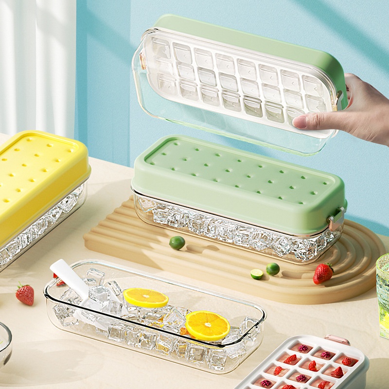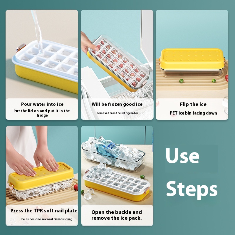 Silicone Ice Cube Mold Box Food Grade Household Press Ice Storage Box Ice Making Artifact Large Capacity Soft