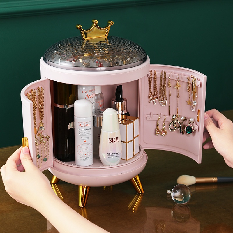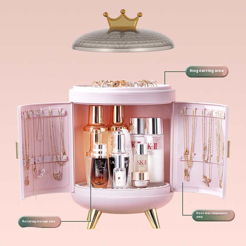 Cosmetic Storage Box Desktop Dressing Rotating Jewelry Display Box Skin Care Products Shelf Dustproof Makeup Box