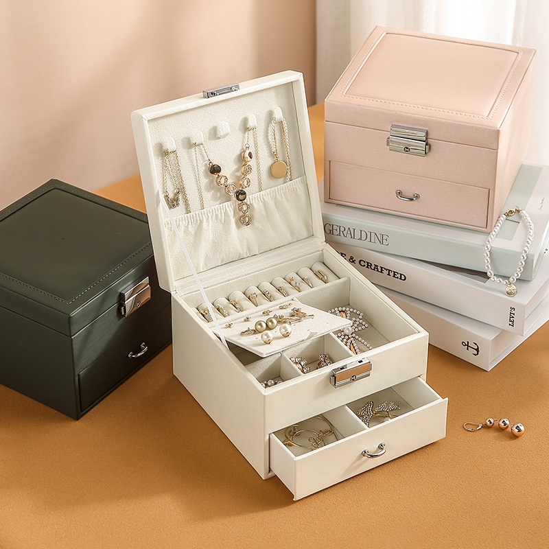 Jewelry Storage Box Pu Leather Multi-layer Drawer-style Children's Hair Accessories Box Earring Earring Storage Jewelry Box