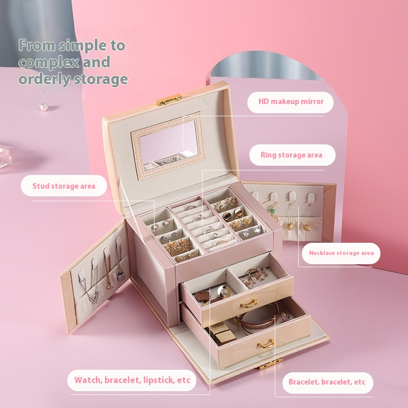 PULeather Jewelry Storage Box Household Portable European Jewelry Box Drawer Jewelry Box