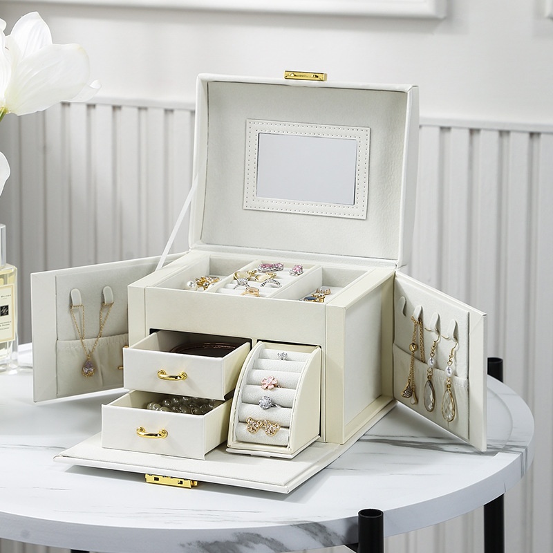 Jewelry Box Hand Jewelry Ring Earring Necklace Large Capacity With Mirror Storage Box Jewelry Box