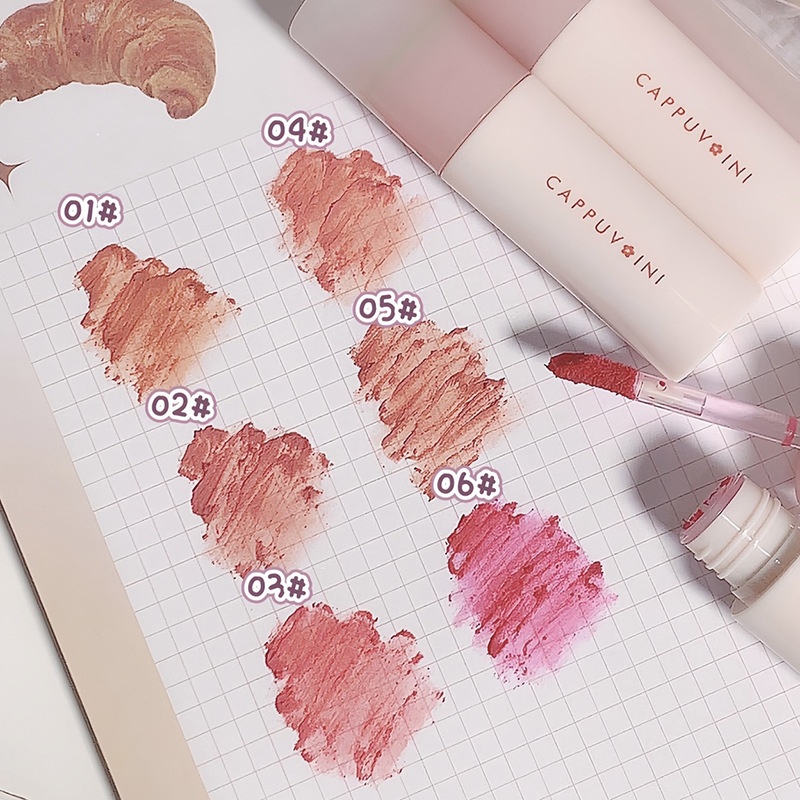 Cappuvini Card Bubble Winnie Small Milk Tube Lip Mud Airy Matte Matte Lip Glaze Bean Paste Gray Pink Lipstick
