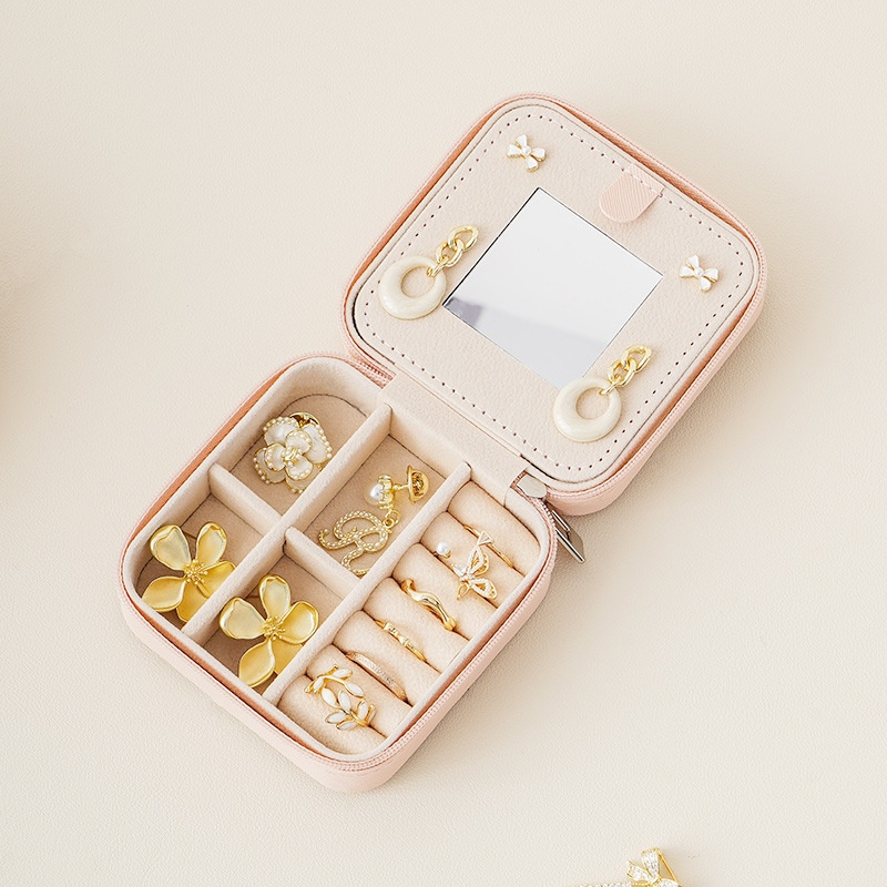 Jewelry Box Travel Portable Storage Box With Mirror Double-layer Necklace Earring Box Ring Jewelry Box