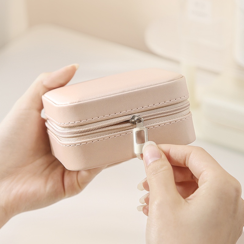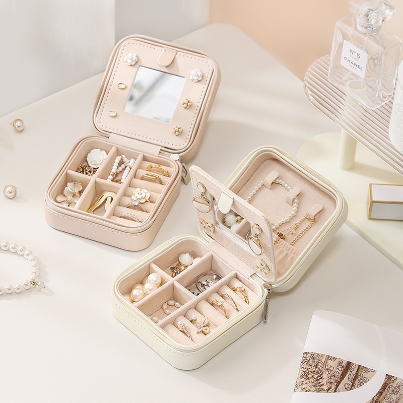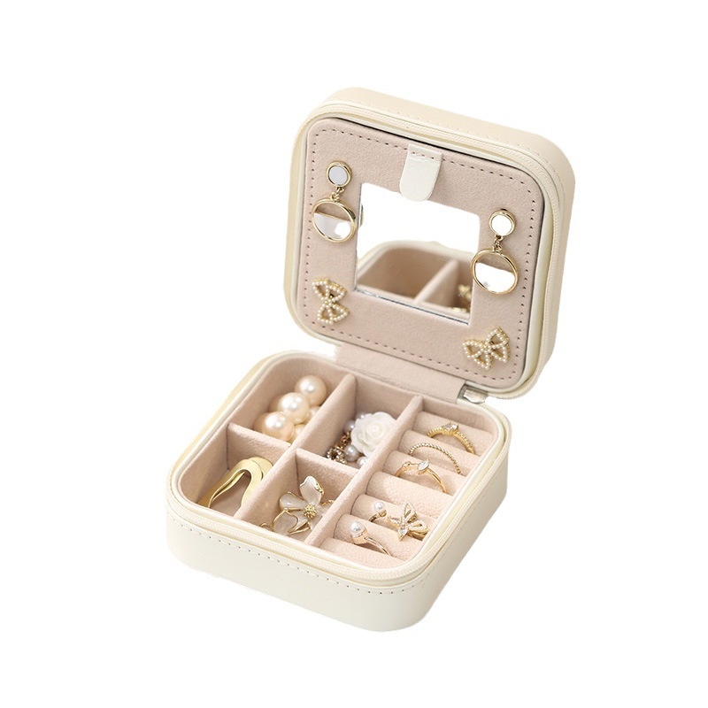 Jewelry Box Pu Leather Jewelry Box Travel Portable Mirror Earrings Earrings Ring Jewelry Storage Box
