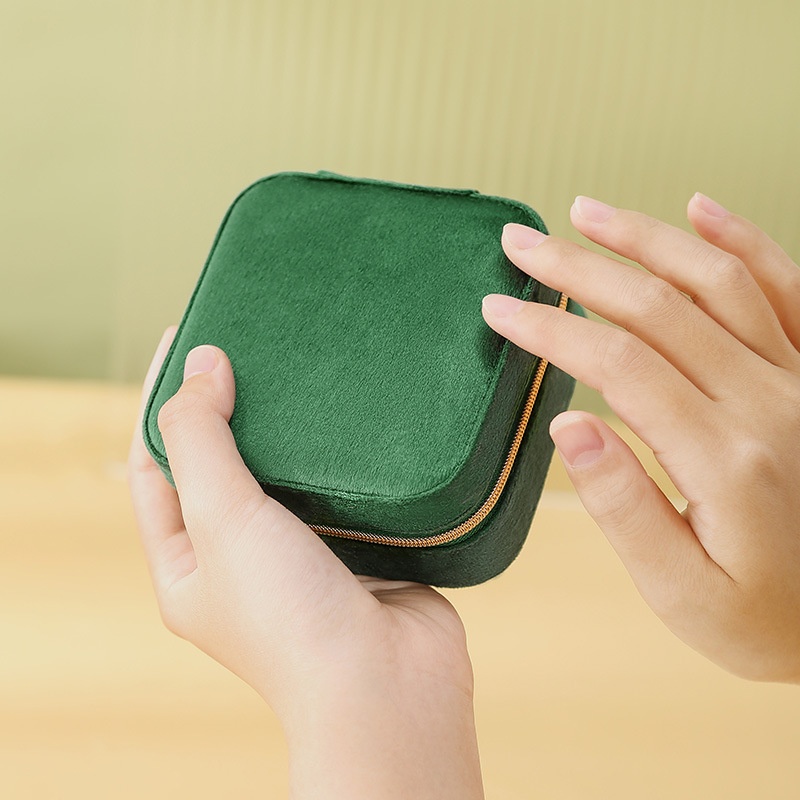 Jewelry Box Velvet Travel Portable Jewelry Hand Accessories Ring Earring Storage Box Double Layer