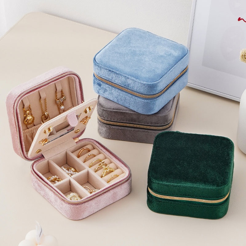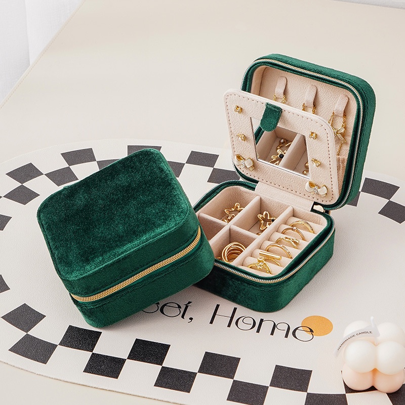 Jewelry Box Velvet Mirror Jewelry Box Travel Portable Jewelry Necklace Earring Ring Storage Box