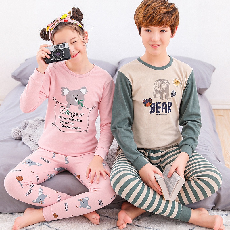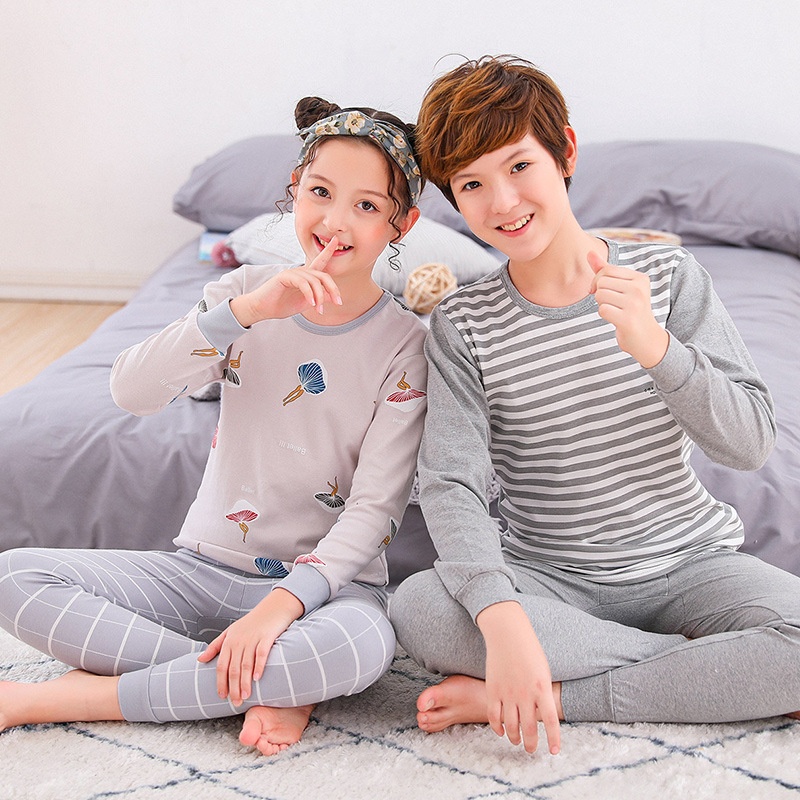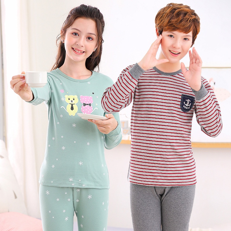 Children's Underwear Set100% Cotton For Middle-aged And Older Children, Students, Children's Autumn Clothes And Long Trousers, Teenagers' Home Base Two-piece Set