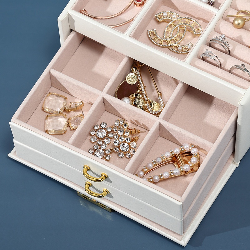 Three-layer Jewelry Storage Box Drawer Large Capacity Jewelry Box Multi-functional Earring Storage Jewelry Box