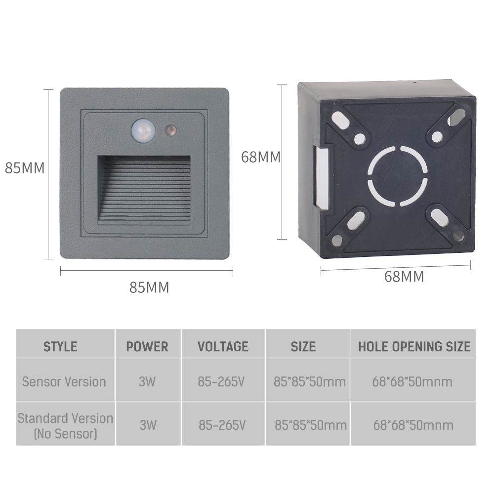 Outdoor LEDEmbedded Footlight3 WStair Corridor Corner Wall Lamp Indoor Human Body Induction Step Night Light