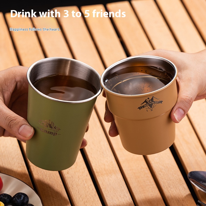 One-piece Camping Tableware Single-layer Coffee304 Stainless Steel Outdoor Cup Style Simple Portable Camping Cup