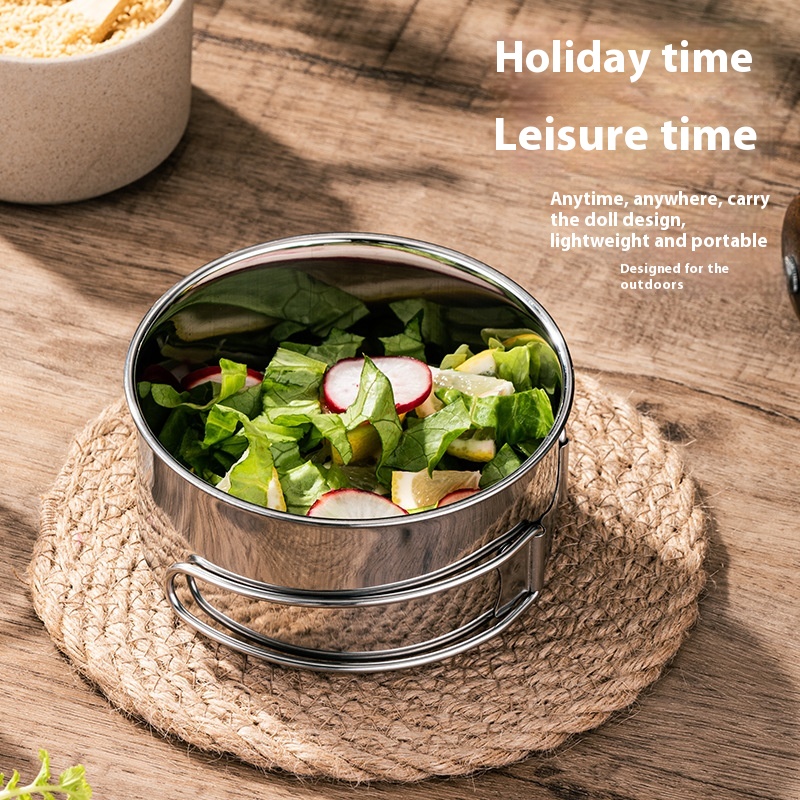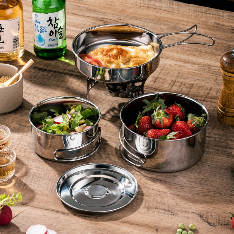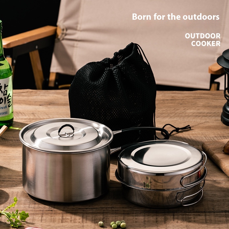 Outdoor Pot Set Stainless Steel Camping Pot Portable Camping Cooker Frying Pan Easy To Store Foldable Handle