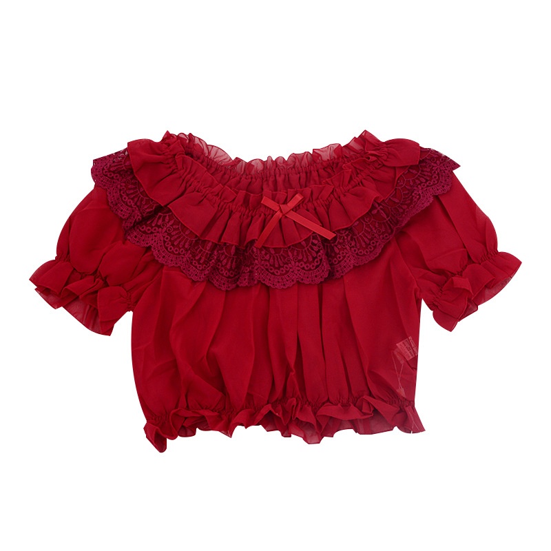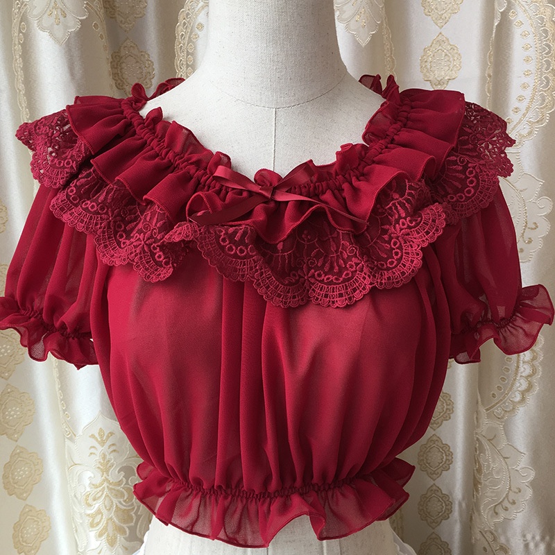 『Inner Tube Top』Lolita Inner Tube Top With Dropped Shoulders,Elastic Puff Sleeves,Lace Ruffles