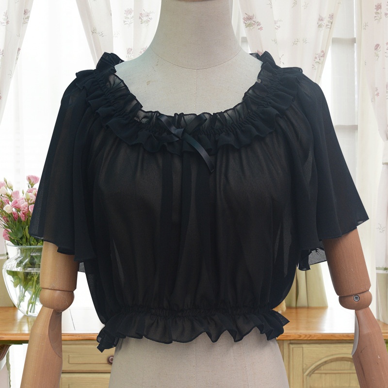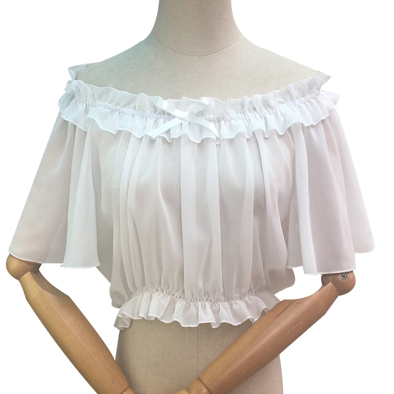 『Little Flying Sleeves』One-shoulder Chiffon Lolita Bottoming Shirt Drop Shoulder Elastic Lace Ruffle Tube Top