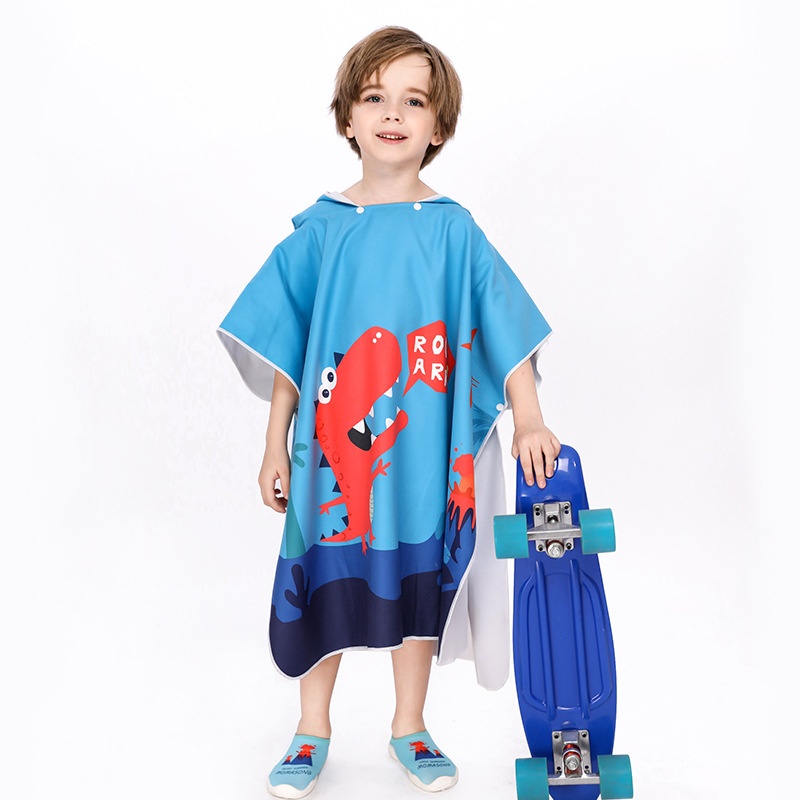 Microfiber Cartoon Print Beach Swimming Changing Bath Towel Children's Hooded Sunscreen Quick-drying Cloak Bathrobe Cape