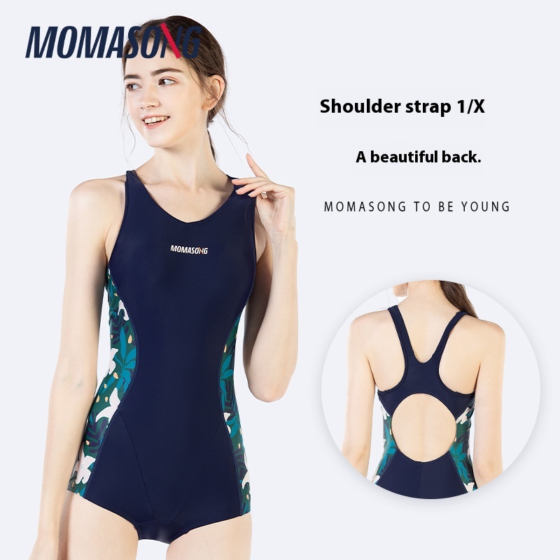 Momasomg Professional Training One-piece Flat Triangle Women's Conservative Slim Belly-covering Swimsuit Hot Spring Swimsuit