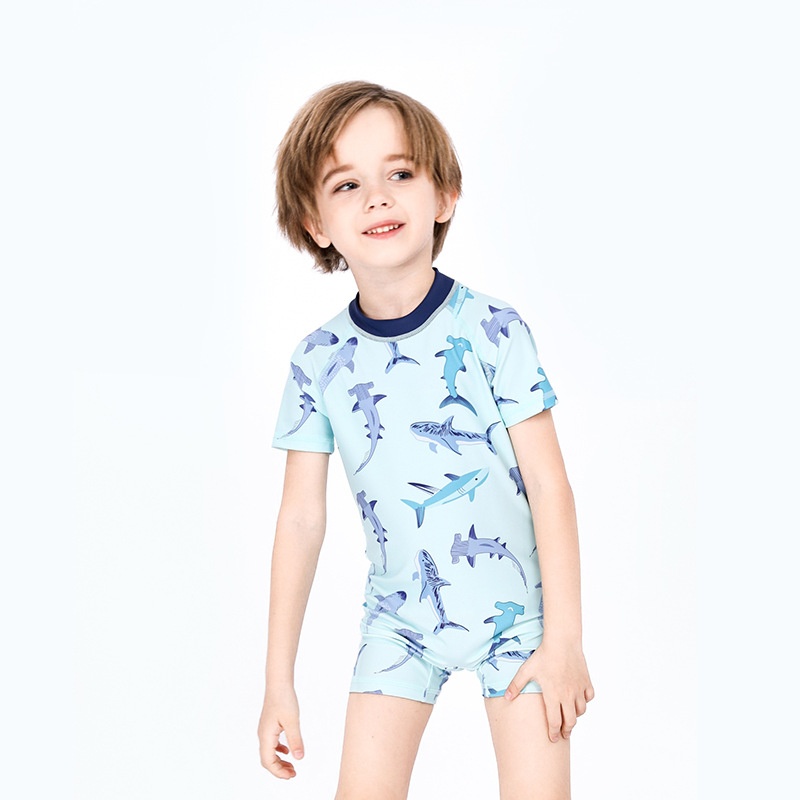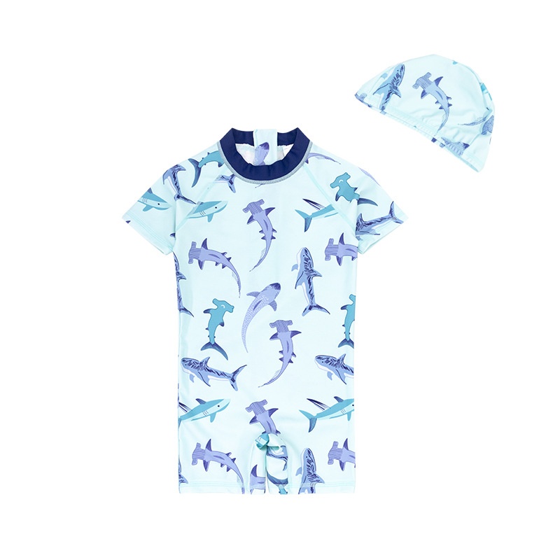 Boys Swimsuit Cartoon Shark Sunscreen Quick-drying Middle-aged Baby Boy Cute Hot Spring Children One-piece Swimsuit