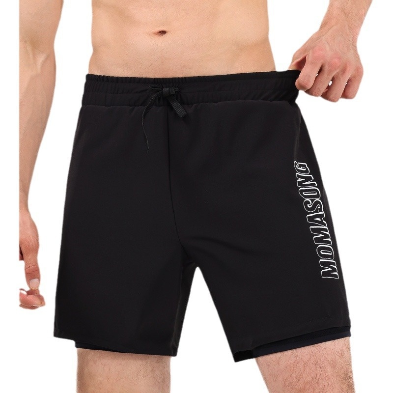 Momasong Men's Swimming Trunks Anti-embarrassment Double-layer Loose Swimming Trunks Suit Five-point Beach Pants Hot Spring Swimsuit