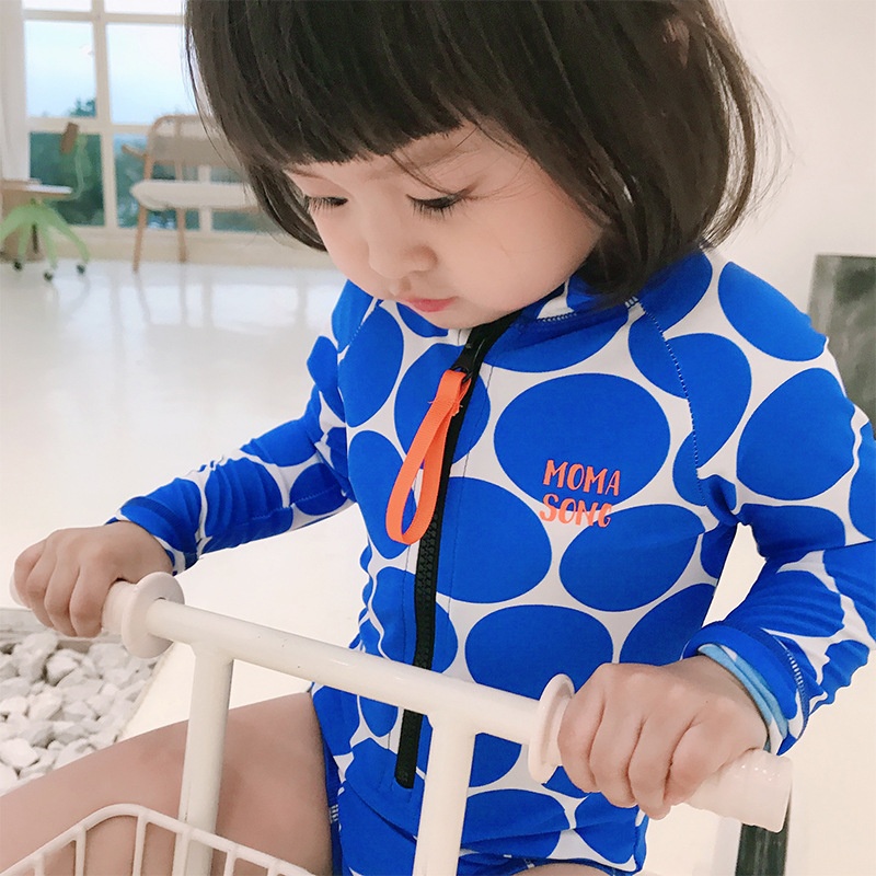 Children's Swimsuit Female One-piece Parent-child Mother And Daughter Swimsuit Girl Polka Dot Long-sleeved Sunscreen Quick-drying Hot Spring Vacation Swimsuit