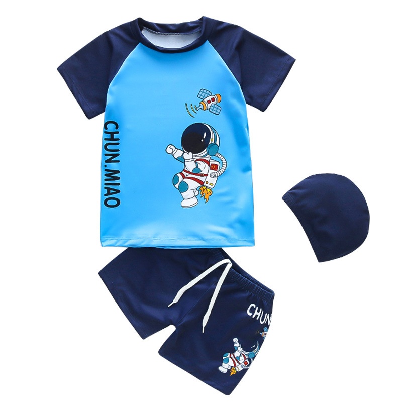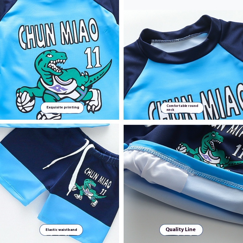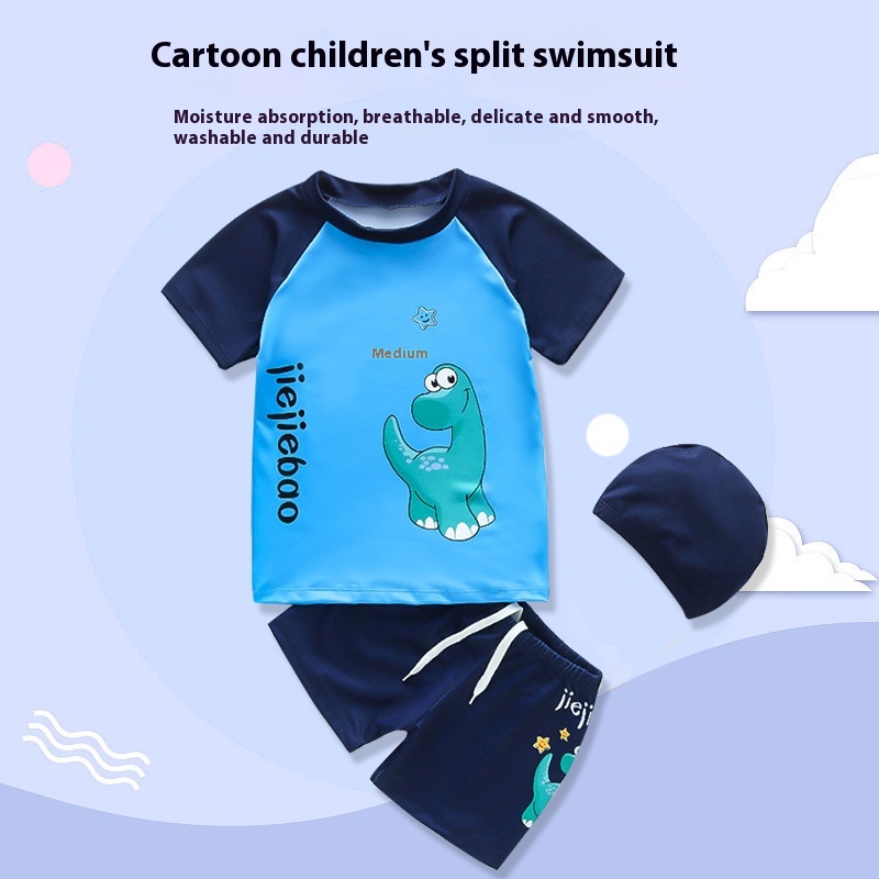 Children's Swimsuit Boys Small And Medium Children Split Sunscreen Quick-drying Swimsuit With Swimming Cap Swimsuit Cartoon Boy Swimming Suit