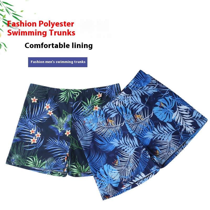 Men's Swimming Trunks Large Size Printed Fashion Polyester Shorts Adult Hot Spring Vacation Anti-embarrassment Swimming Trunks