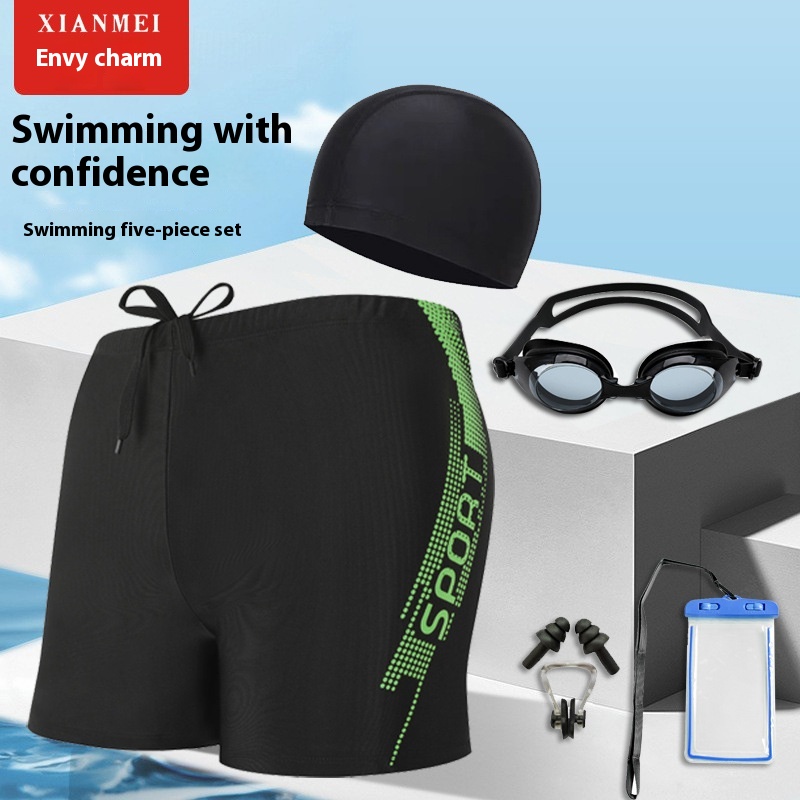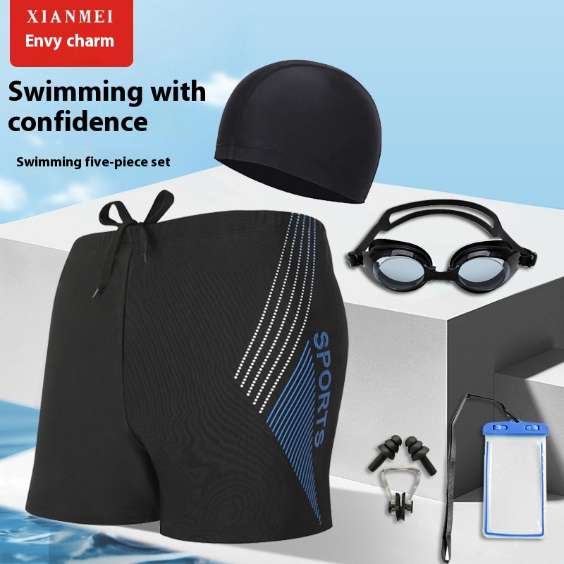 Swimming Trunks Men's Anti-embarrassment Swimming Equipment Men's Full Set Of Swimsuits Hot Spring Comfortable Large Size Swimming Trunks