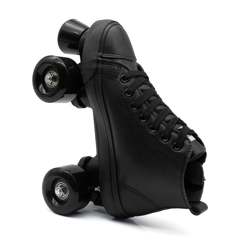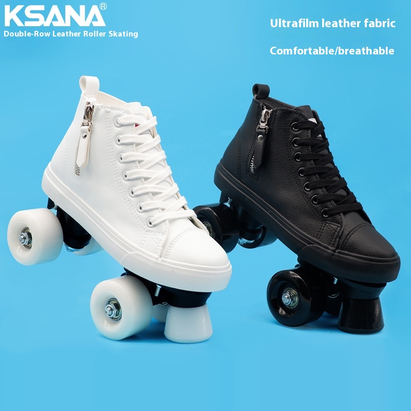 Leisure Breathable Adult Men And Women Double Row Roller Skates Zipper Leather Four-wheel Skates Luminous Wheel Roller Skates