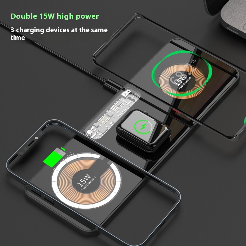 Transparent Magnetic Three-in-one Wireless Charger Suitable For Apple13 Watch Earphones15 WWireless Fast Charging