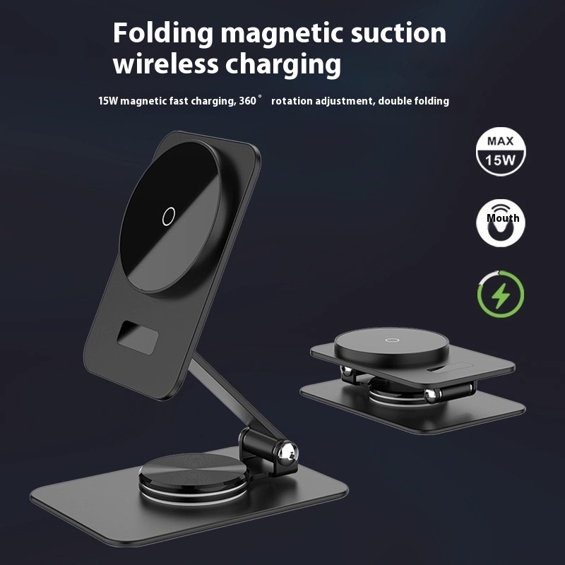 Aluminum Alloy Folding360 Degree Rotating Damping15 WSuitable For Apple Mobile Phone Magnetic Bracket Wireless Charger