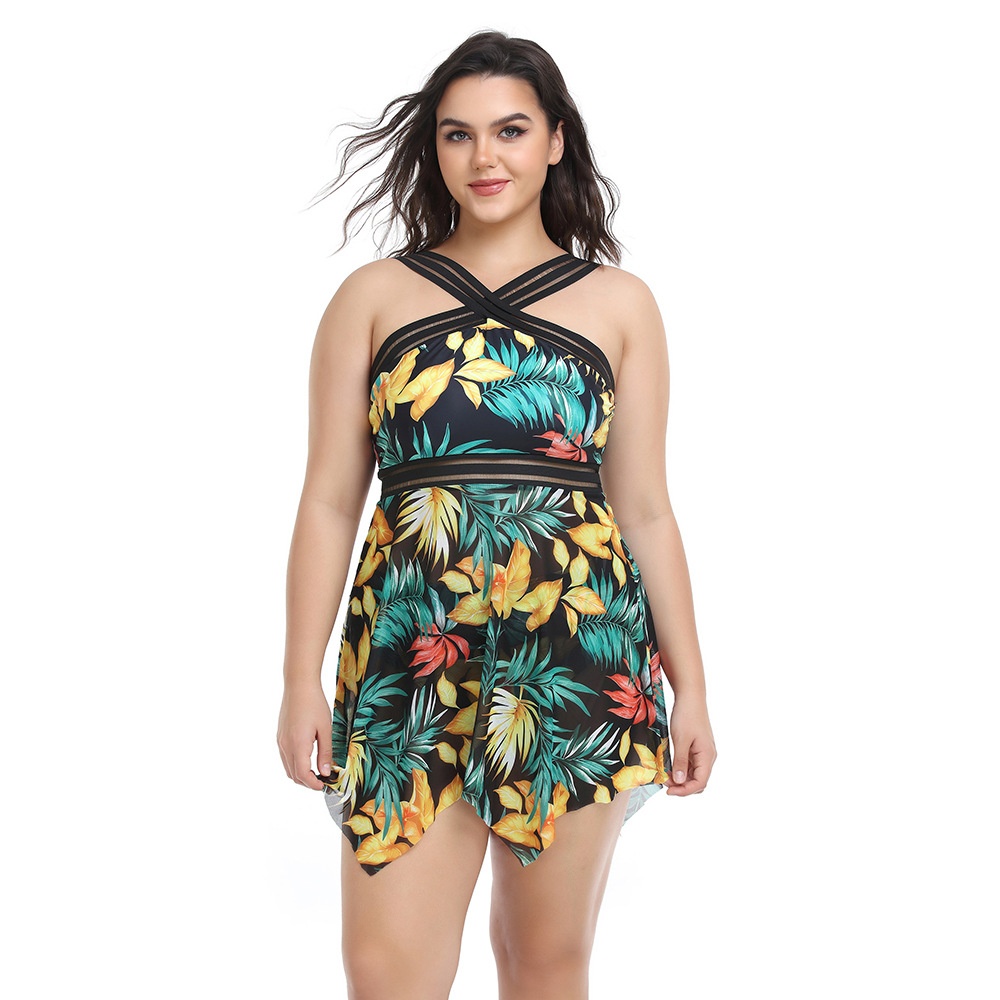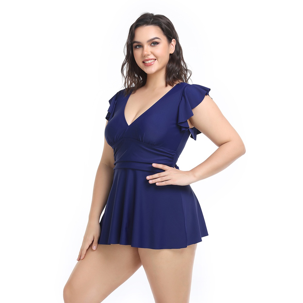 Conservative Large Size Women's Swimsuit Slim Solid Color Hot Spring Boxer European And American Style Swimsuit Batch