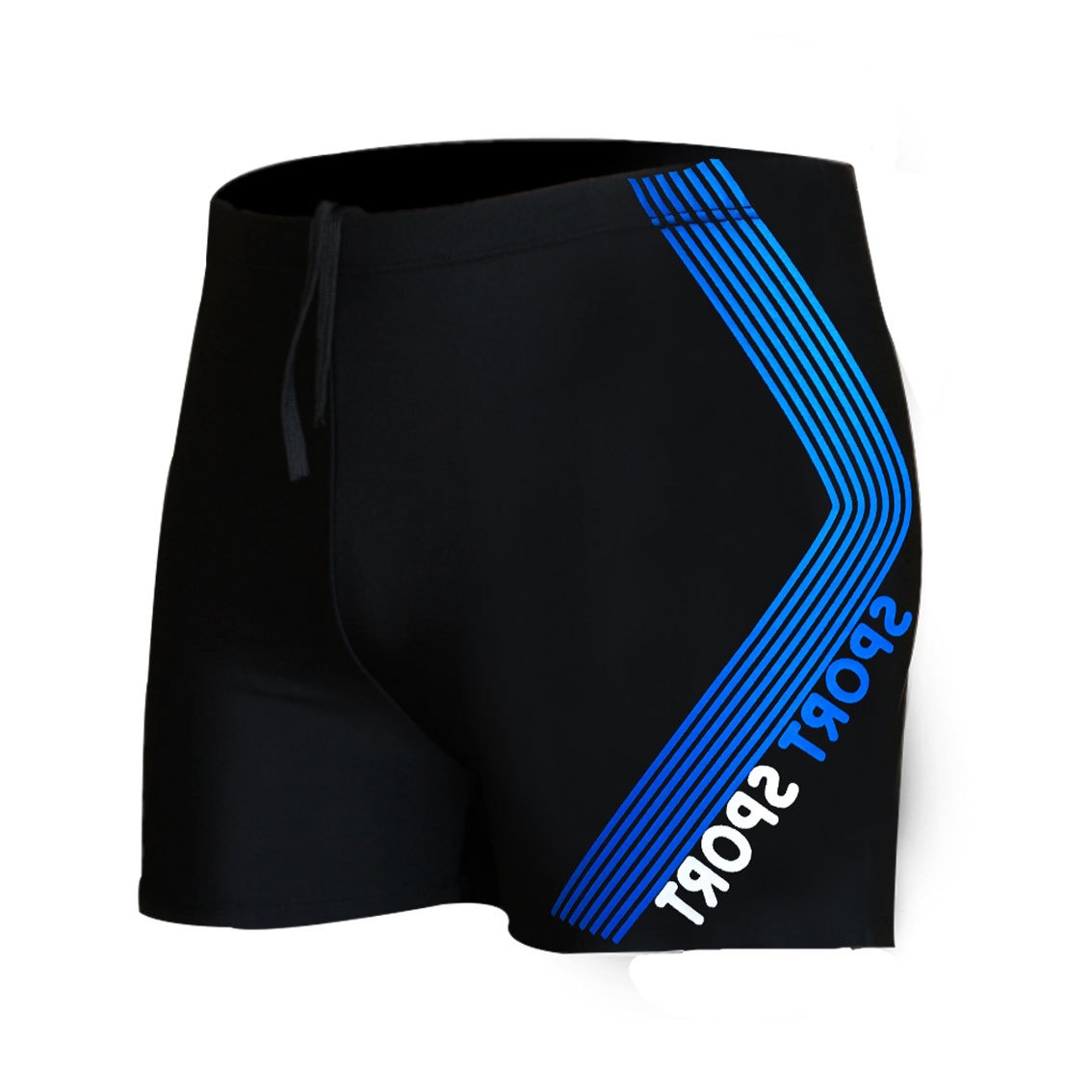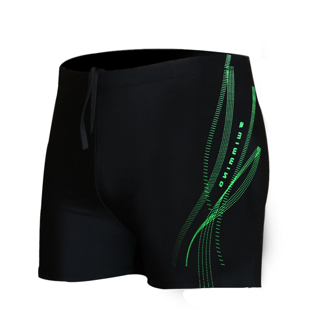 Black Men's Swim Trunks Printed Men's Boxer Swimming With Drawstring Training Simple Elastic Holiday Swimsuit Quick Dry