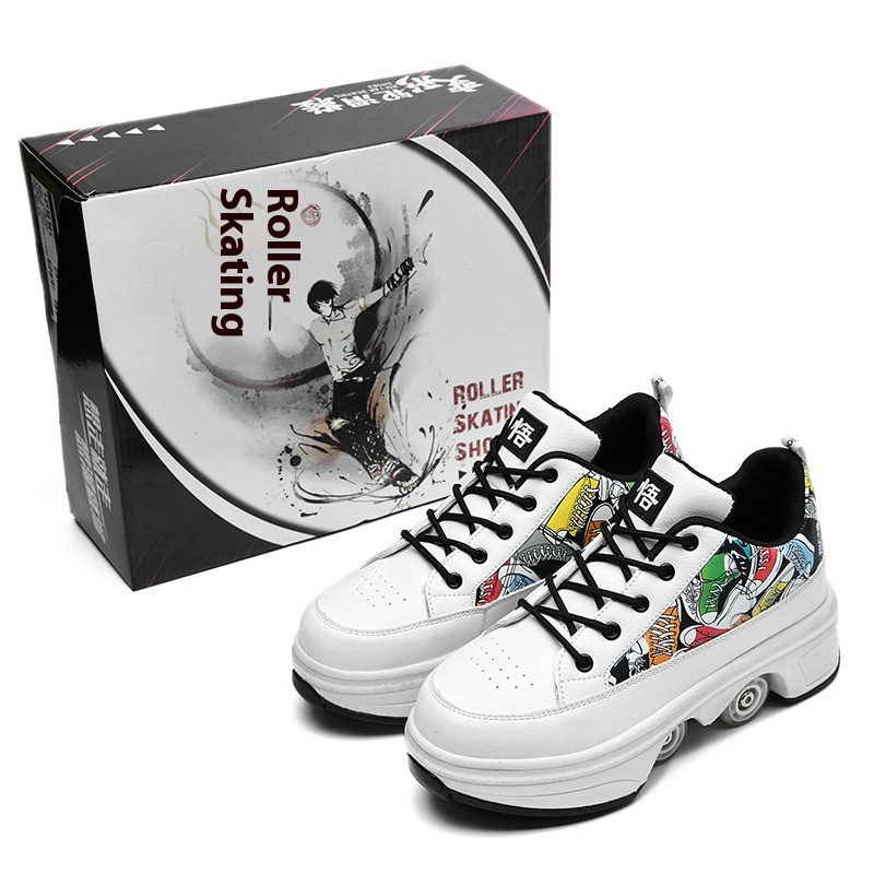 Direct Walking Shoes Deformation Shoes Four-wheel Dual-purpose Roller Skates Double Row Walking Shoes Roller Skates