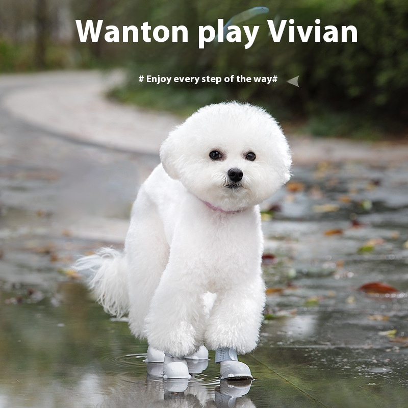 Cartoon Puppy Shoes Pomeranian Bichon Teddy Shoes Set Of4 Waterproof Rain Boots Foot Covers Pet Silicone Rain Boots