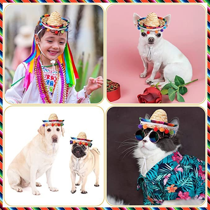 Straw Mexican Hat Dog Costume Accessories Carnival Party Supplies Suitable For Kids Pets And Dolls Decoration