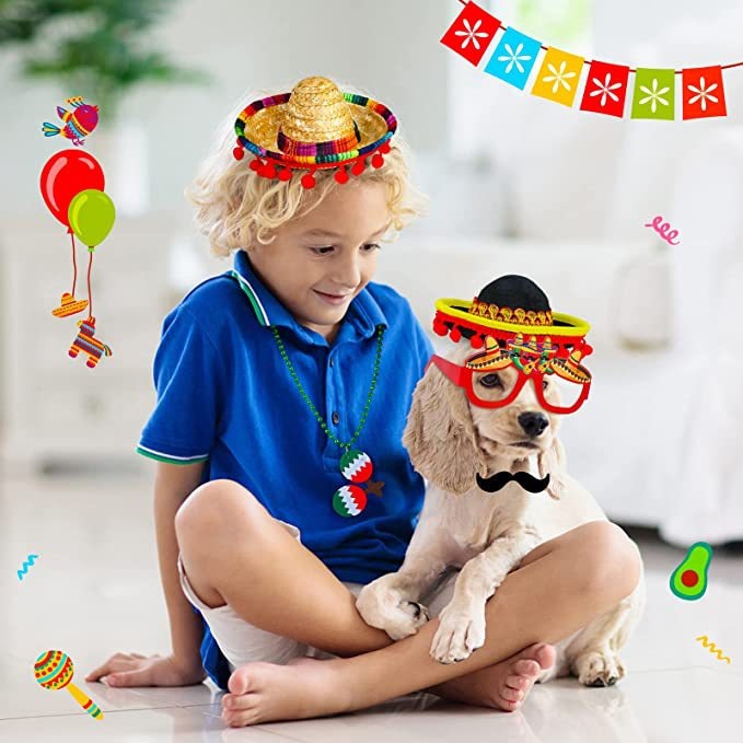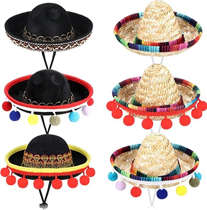Pet Mexican Straw Hat Dog Wide Brim Hat Headdress Hat Toy Hat Hairpin Hat Mini Hat