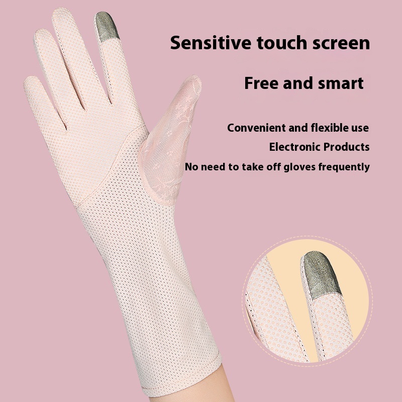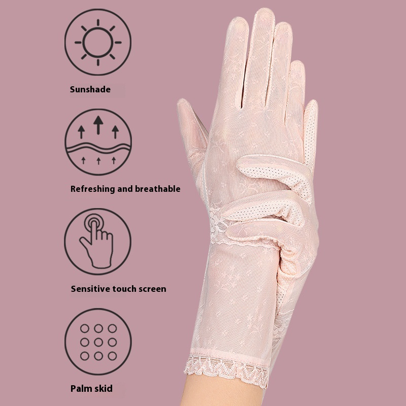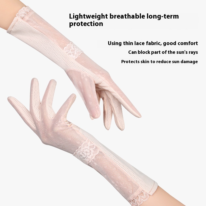 Sun Protection Gloves For Women In Summer Outdoor Driving And Cycling UVProtection Touch Screen Non-slip Mid-length Lace Gloves