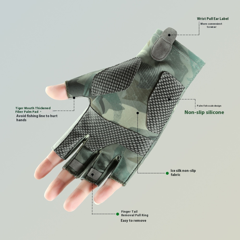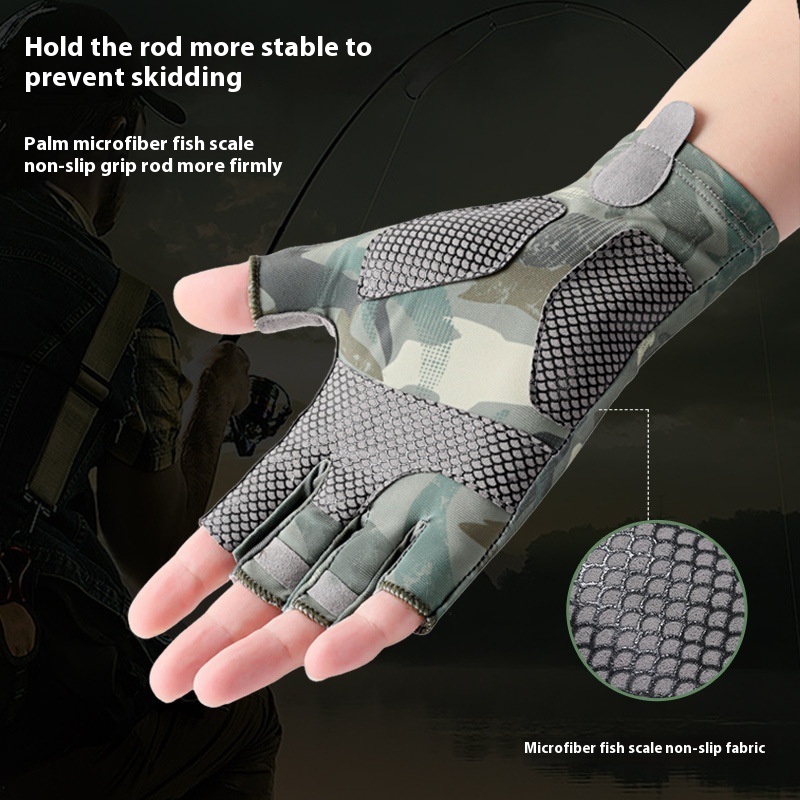 Summer Fishing Gloves Men's Thin Driving And Cycling Breathable Ice Silk Lure Outdoor Fishing Half Finger Sun Protection Gloves