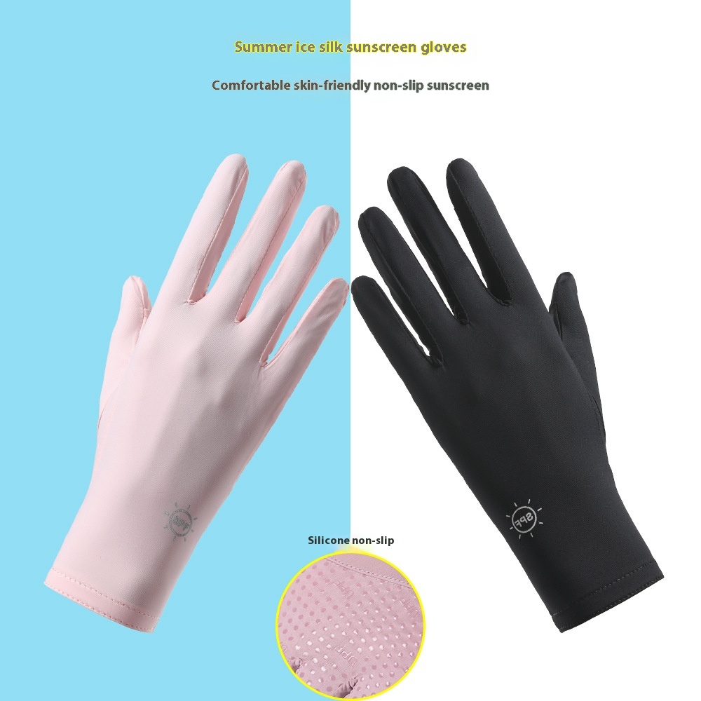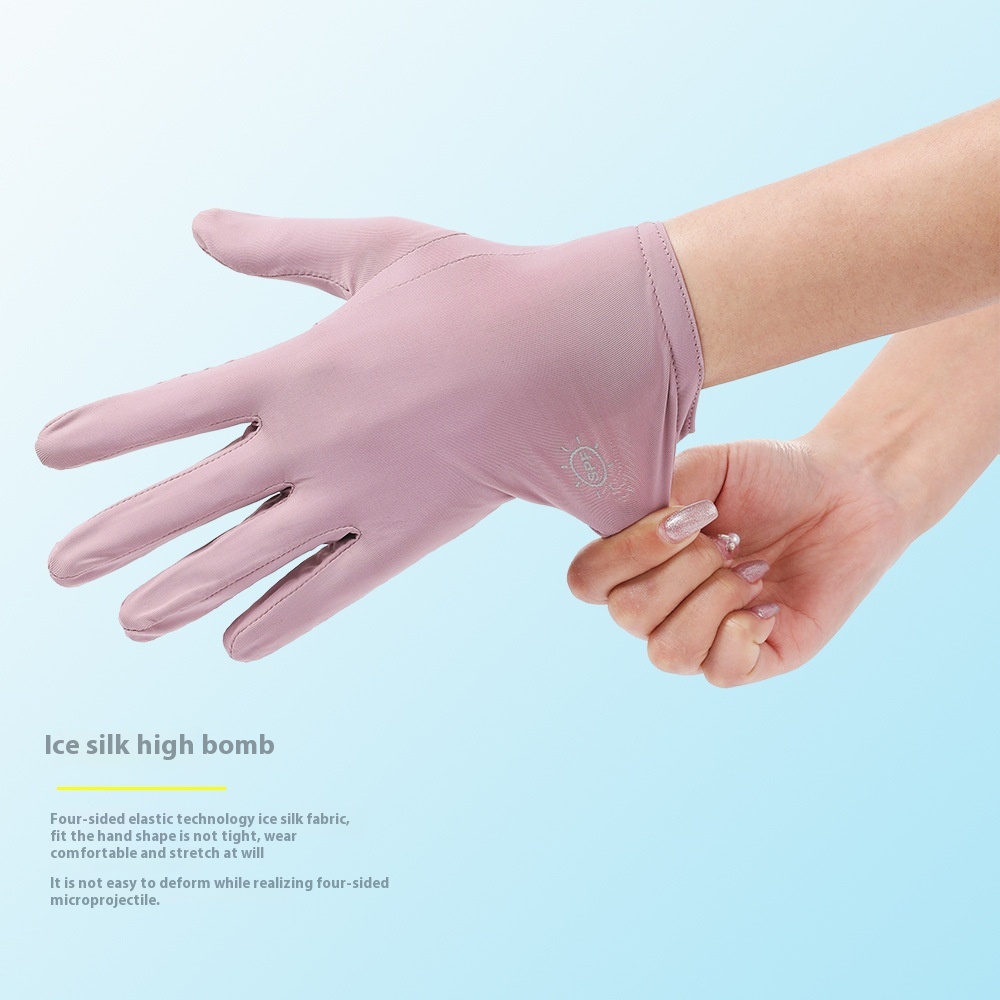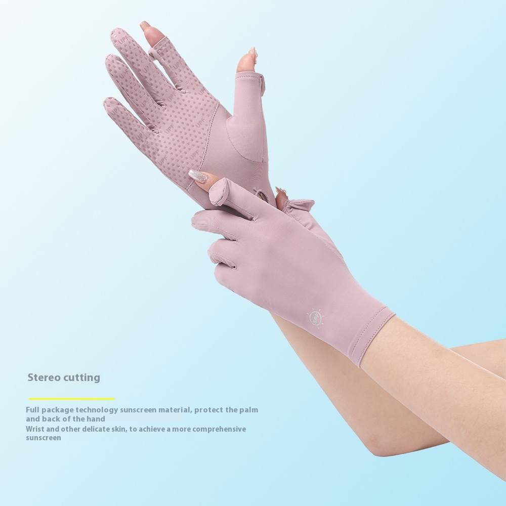 Sun Protection Gloves For Women In Summer,Outdoor Anti-ultraviolet And Anti-slip Two-finger Thin Driving Touch Screen Cool Ice Silk Gloves
