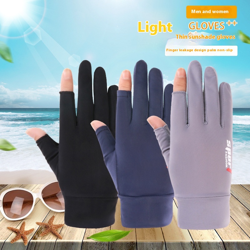 Sun Protection Gloves Thin Spring And Summer Men And Women Outdoor Sports Sunshade Half Finger Two Finger Fishing Touch Screen Gloves