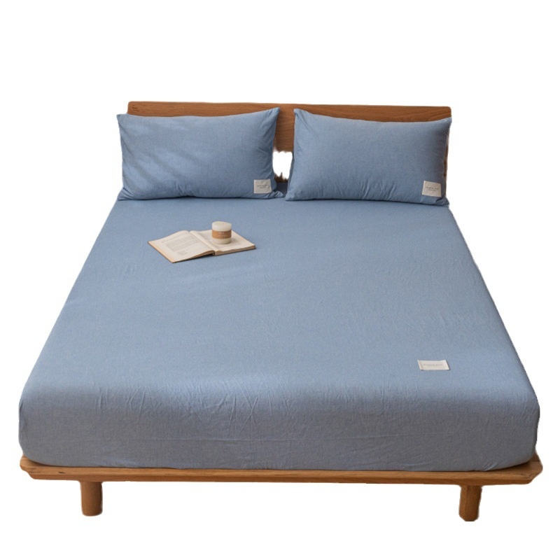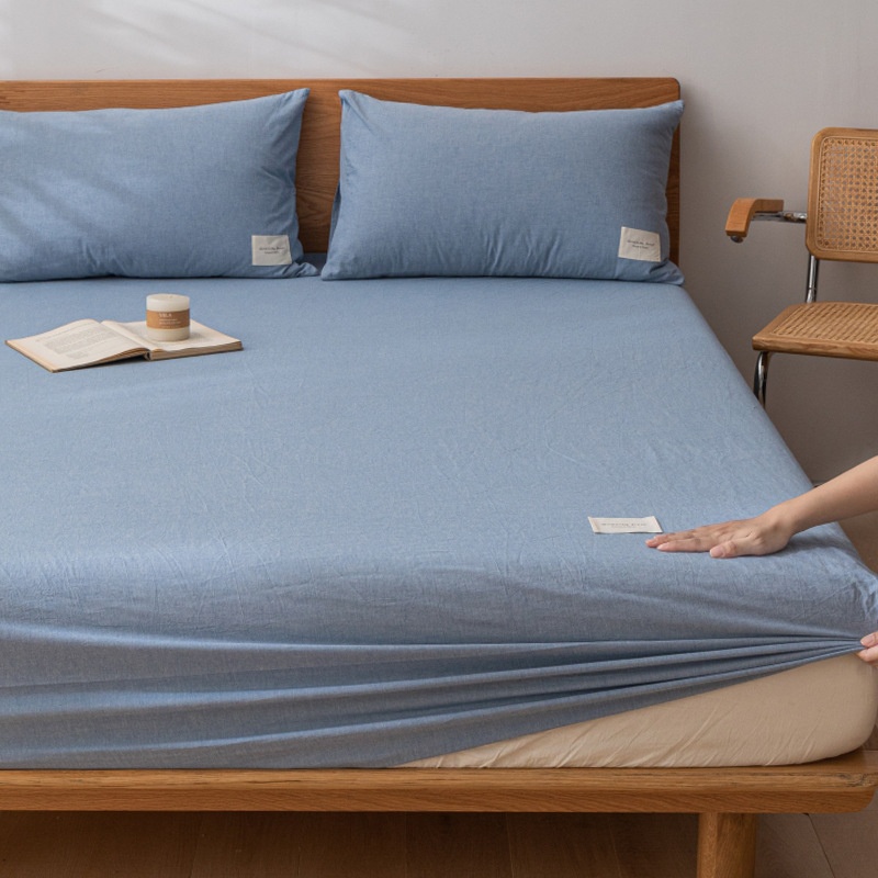 Japanese Style Fitted Sheet Single Piece Washed Cotton Fully Covered Anti-slip Mattress Dustproof Protective Cover