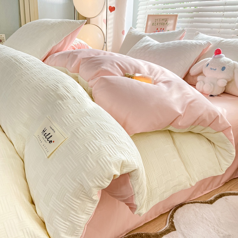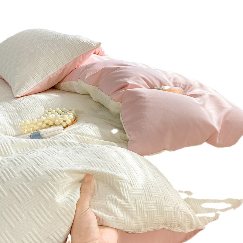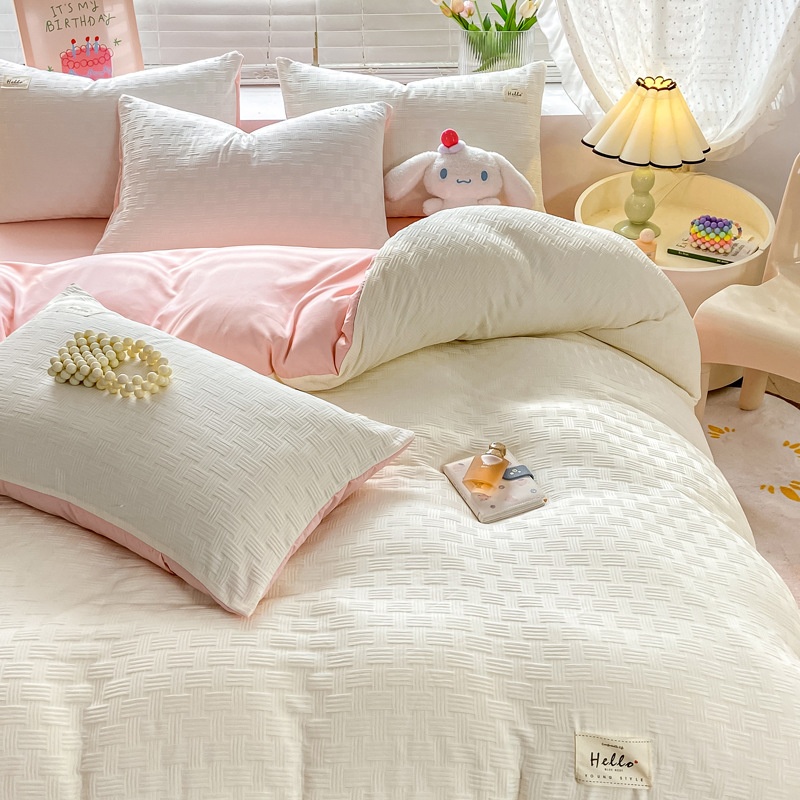 Cream Seersucker Bed Four-piece Washed Cotton Quilt Cover Bedding Set